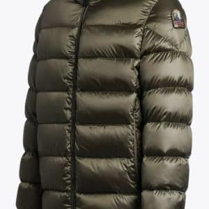 Hooded down-filled 20 den polyester-nylon twill bomber with water repellent treatment. The hood is adjustable by means of a drawstring. Two zippered pockets in front and two pockets on the inside. Two-way zipper and underarm vents. Ribbed cuffs and bottom. Iconic yellow elastic strap neck closure and PJS patch on the left sleeve.