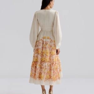 Original price was: 459,00 €.321,00 €Current price is: 321,00 €.Printed midi dress with a deep v-neck, fitted waist and wide sleeve.