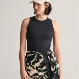 - Woven brand label at back seam