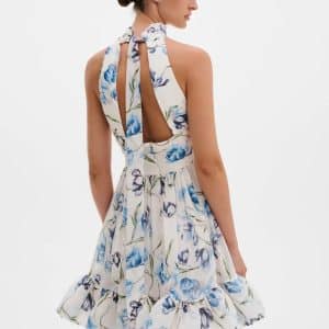 MALINA Fern Halterneck Ruffled Mini Dress White