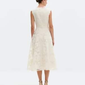 MALINA Elin Round Neck Lace Midi Dress Vanilla