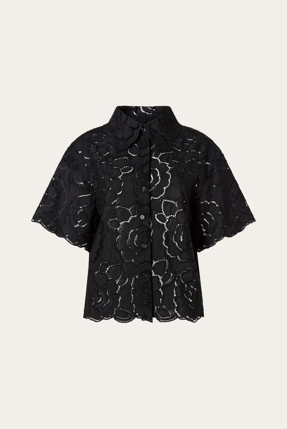 MALINA Claudia Short Sleeve Lace Shirt Black