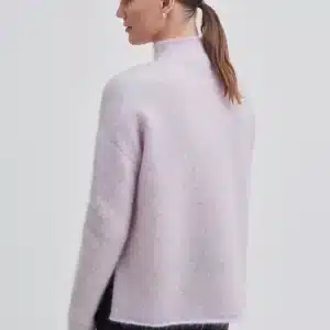Second Female chevron sweater. Made in soft and stretchy mohair-wool blend yarn with all-over chevron pattern and slightly fluffy texture. Featuring a small turtle neck and long sleeves. Solid trim at neck, cuffs and bottom hem. Dropped shoulders. Wide, slightly boxy fit.
