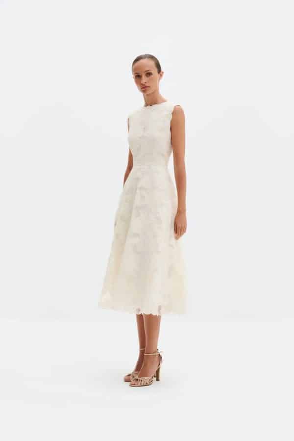 MALINA Elin Round Neck Lace Midi Dress Vanilla